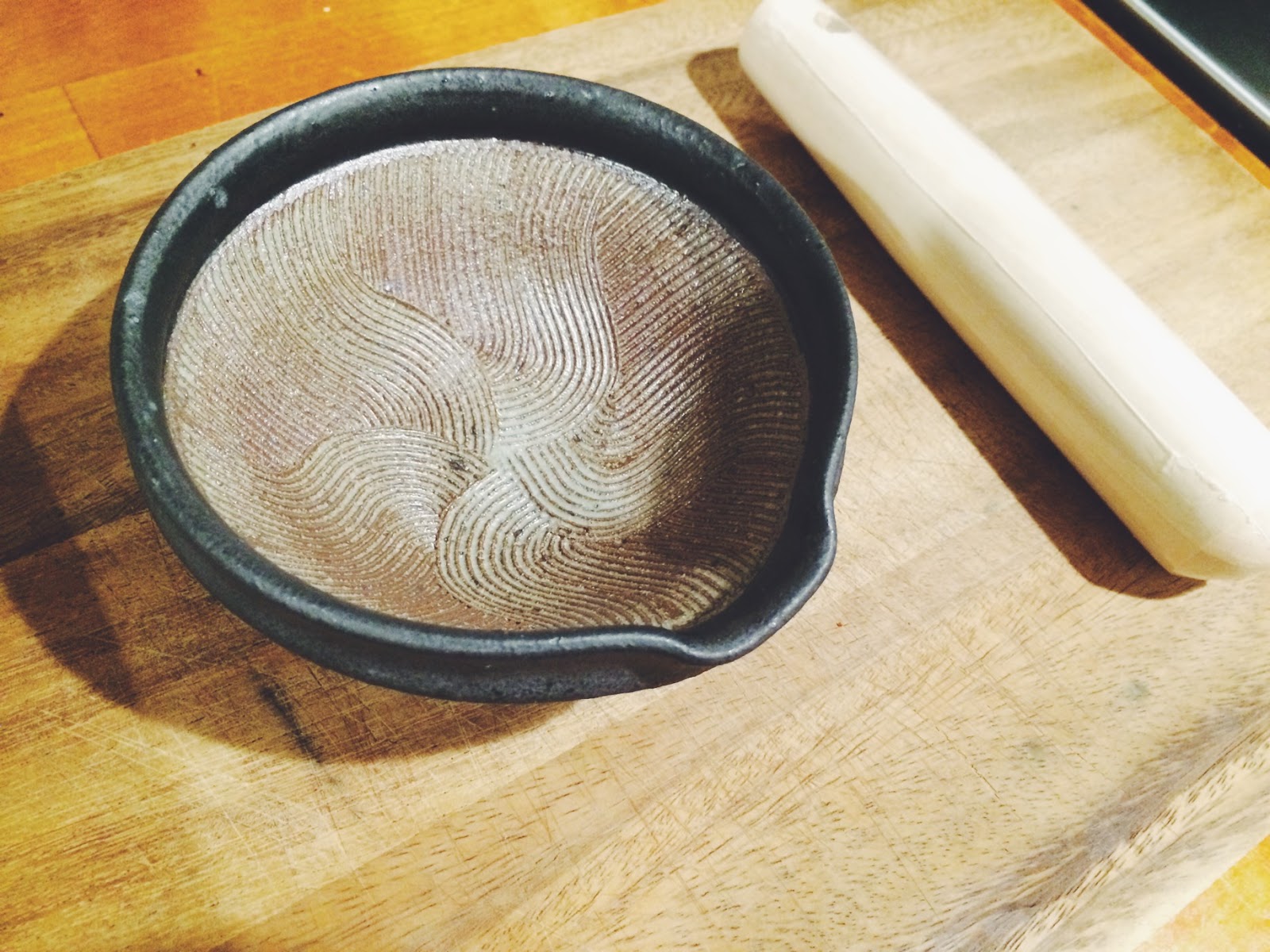 左撇子的擂钵 职人 Com三条展卖店铺中展出的山只华陶苑juju Mortier的擂钵进过多次试做 终于诞生了左右手方向都容易研磨的钵纹 职人 Com博客