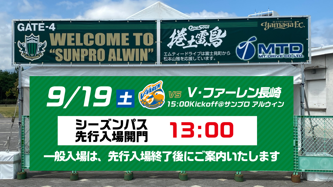 松本山雅fcオフィシャル On Twitter 9 19 長崎 開門時間 本日は シーズンパス先行入場がございます ご入場前の待機列など 詳細は下記よりご確認ください Yamaga ホームゲーム情報 Https T Co 5dyhioznbi