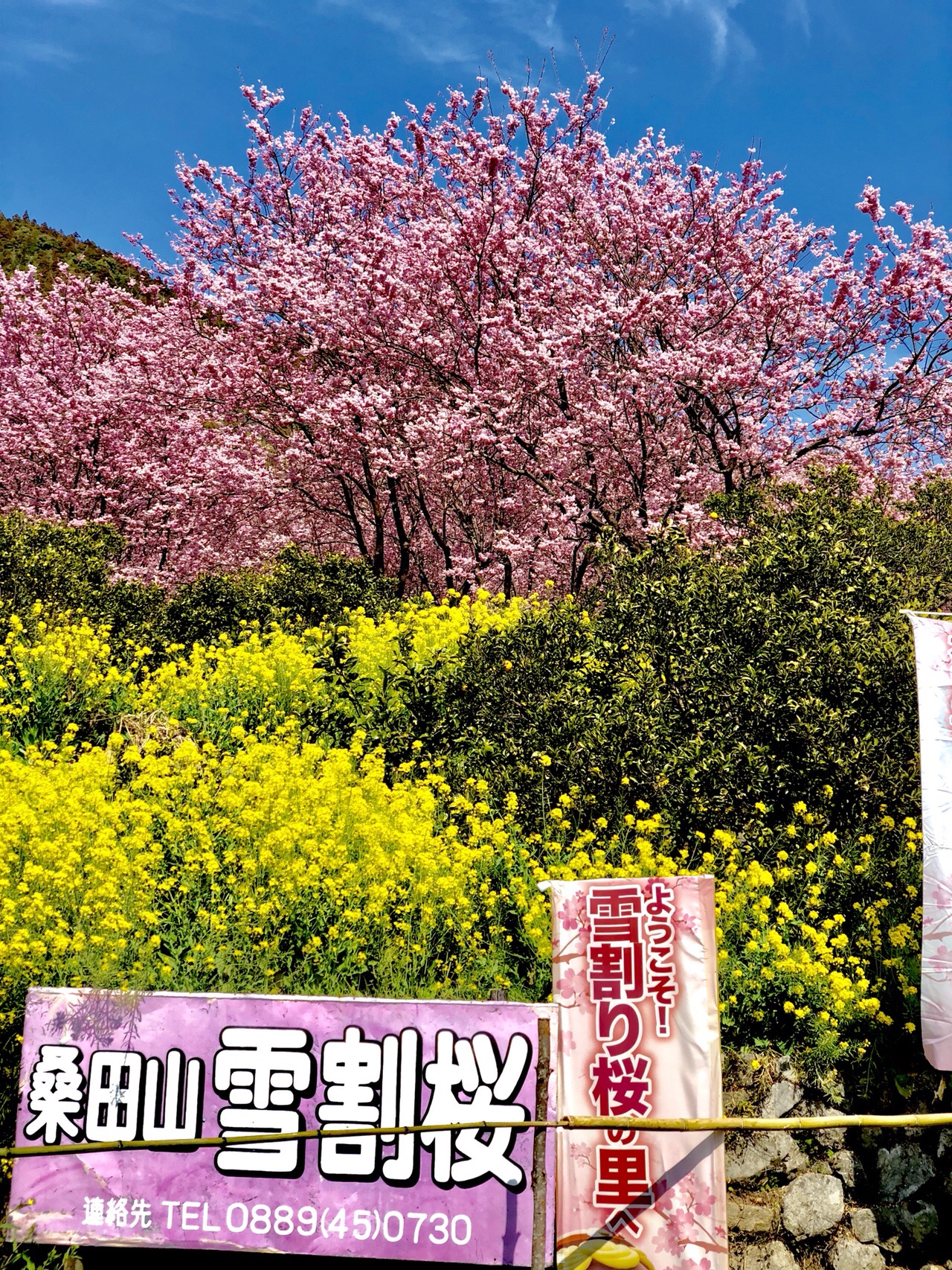 桑田山 雪割桜 1000本桜 菜の花 山村