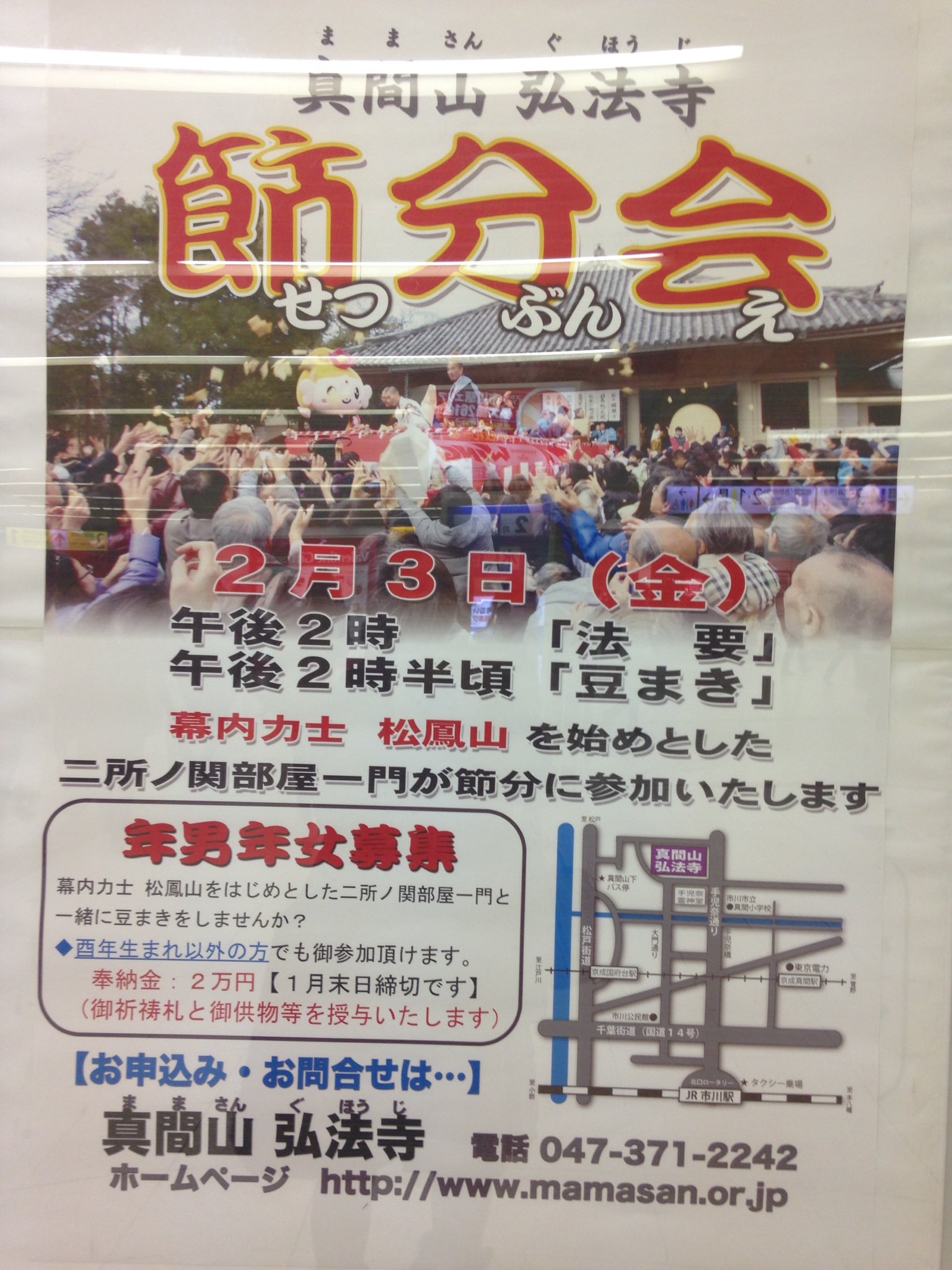 市川 浦安のお店情報企画 まいたうん On Twitter 真間山弘法寺 の 節分会 は 2月2日 火 14時から法要 一般参加者への豆まきは 残念ながら中止です 市川市 豆まき中止 年男年女募集