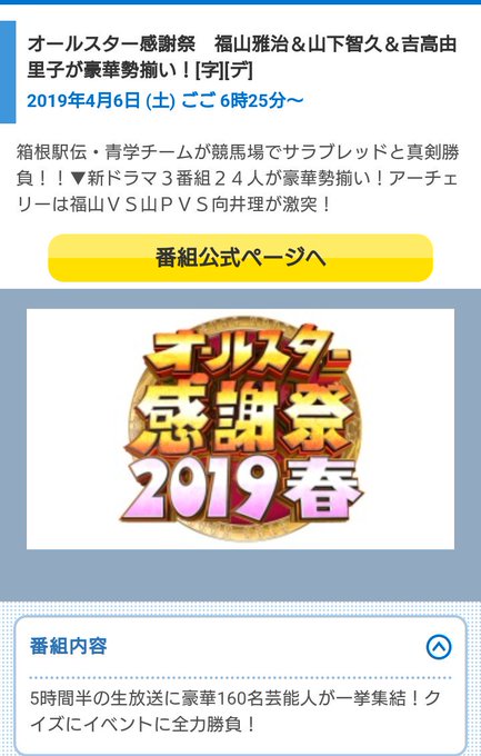 19年04月06日18時25分 Tbsテレビ オールスター感謝祭 箱根駅伝青学2番勝負 福山雅治吉高山p勢揃い
