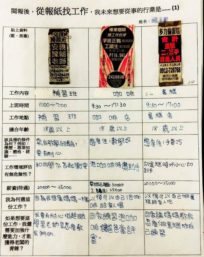 五力全開 Give Me Five 求職達人學習單範例