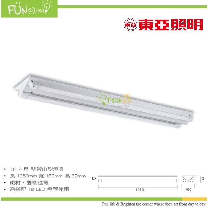 台灣東亞山型led T8 4尺40w 雙管燈具lts4243xaa 吸頂燈具附燈管政揚照明 蝦皮購物